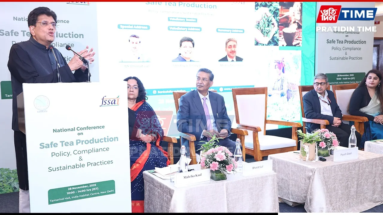 Speaking at the National Conference on “Safe Tea Production: Policy, Compliance & Sustainable Practices”, organised by the Sankala Foundation in collaboration with the Food Safety and Standards Authority of India (FSSAI), Goyal stressed the need to move beyond raw leaf exports and focus on high-value, branded finished products. He said such reforms were essential for India’s growth trajectory toward Viksit Bharat.